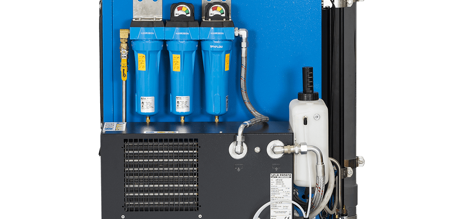 It consists of an industrial screw compressor that delivers air at a pressure of 8 bar towards a membrane that separates nitrogen and oxygen up to a maximum percentage of 40% of oxygen. The enriched air can be compressed to 232 bar in combination with a high pressure compressor. The percentage of oxygen obtained at the outlet can be adjusted from 32% to 40% thanks to a valve accessible directly on the top of the compressor. The oxygen analyzer allows you to check the correct percentage, adjusting it through the appropriate valve.